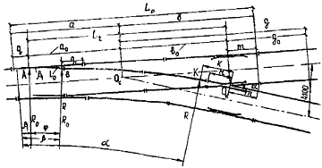переводной кривой, размеры стрелки, основные и осевые размеры стрелочного