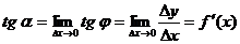 Определение 1. Производной данной функции y=f(x) по аргументу x называется предел отношения приращения функции Δy к приращению аргумента Δx, когда последнее произвольным