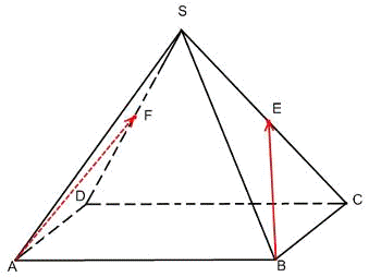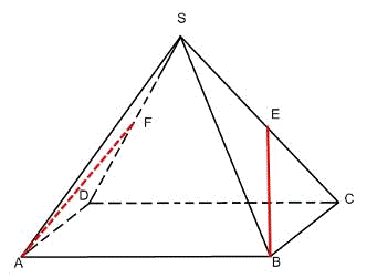 пирамиде SABCD, все рёбра которой равны 1, точки Е и F- середины рёбер