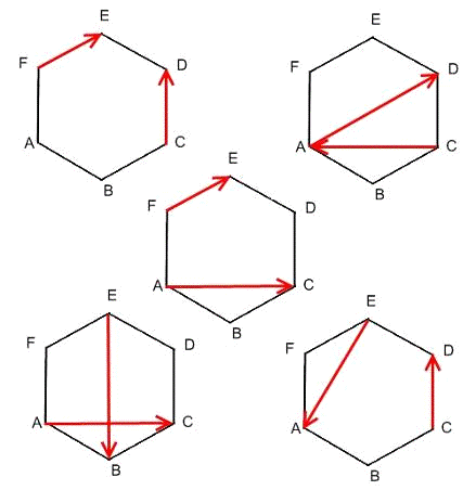 как сумму двух других, совпадающих с рёбрами многогранника.