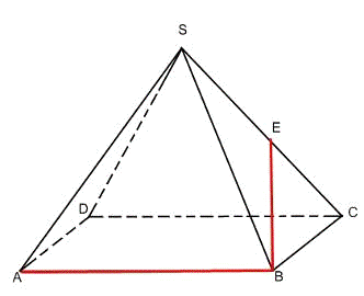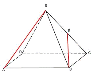 пирамиде SABCD, все рёбра которой равны 1, точка Е - середина ребра SC. Найдите