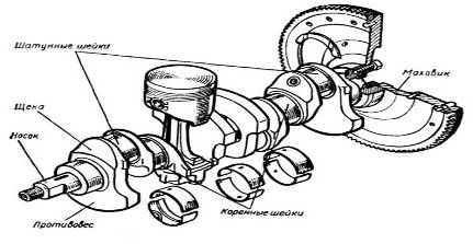 Устройство кривошипно - шатунного механизма