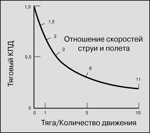 струи приводит к большой тяге на единицу расхода и к малому тяговому КПД. Это