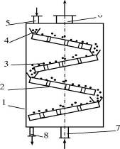 для вивантаження адсорбенту; 4 - адсорбент; 5 - штуцер для відведення парів при