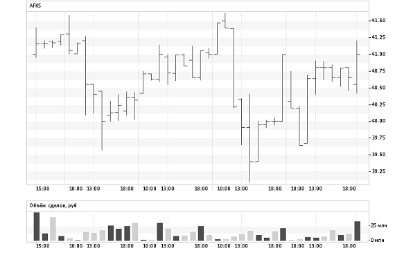 15:00 цена открытия по цене 40.55) и 41.10 (примерно) - цена закрытия, примерно