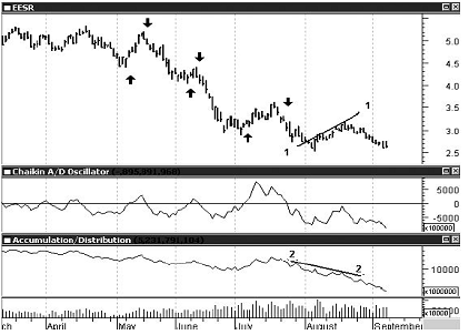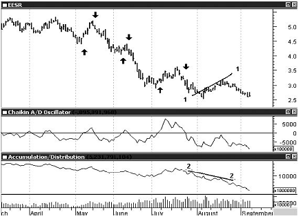 лишь форма кумулятивной кривой. Дневное изменение A/D отражает, в какую сторону