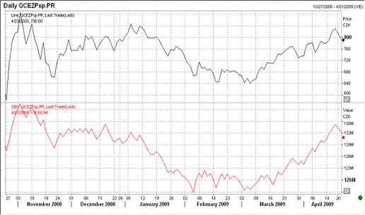 цены закрытия, то все дневные объемы рассматриваются как рост общего объема.