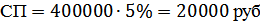 застрахован на сумму 400 тыс. руб., сроком на 1 год. Ставка - 5 % от страховой