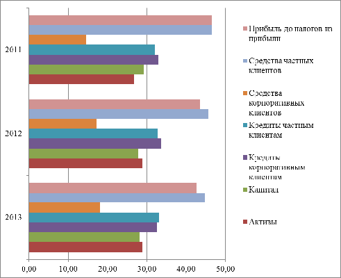 средств банка в 2011-2013 гг. наглядно отражена на рис. 8.
