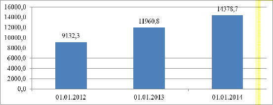 России» по состоянию на 01.01.2014 г. составила 16305 млрд. руб., превысив