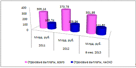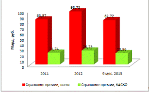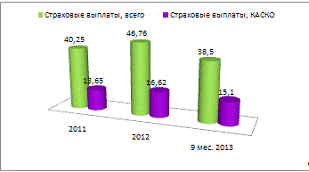 места КАСКО-страхования в страховых премиях и выплатах в Российской Федерации