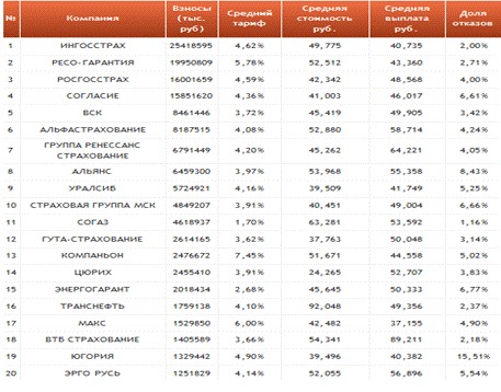 По данной таблице видно, что по страхованию КАСКО существует