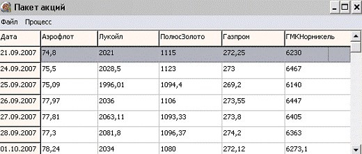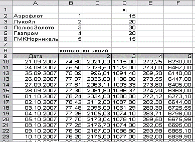 статистических данных котировок ценных бумаг российского фондового рынка для