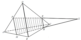 пересікає площину грані (АОС) по прямій РХ;