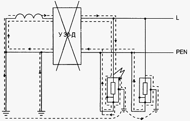 проводнике (рис. 1). Такая схема не позволяет использовать УЗО-Д, реагирующего