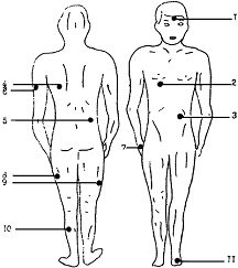 температуры поверхности тела рекомендуется 11-точечная система (рисунок 2.1).