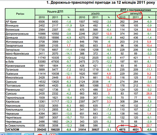 транспорту. У дорожньо-транспортних катастрофах щорічно гине 23,5 людини у