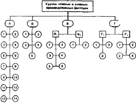 вредные факторы разделяются (рис. 1) на физические А, химические Б,
