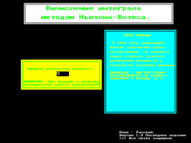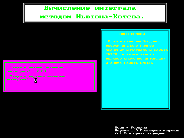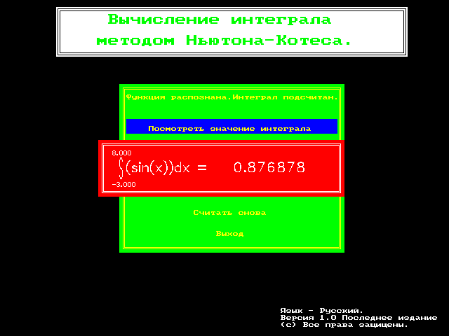 программы, рассчитывающей интеграл методом