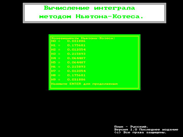 баг с неверным выводом на экран значений коэффициентов Ньютона-Котеса, хотя