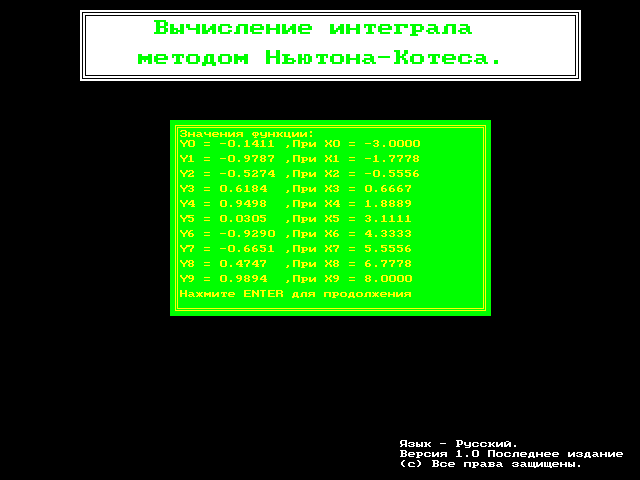 int:=mainint(n,a,b,y); {Вычисление