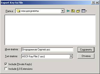 в папке «Мои документы» создайте папку «ключи»)