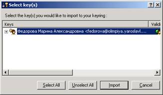 2. В окне PGPkeys нажмите кнопку