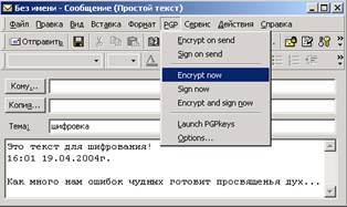 меню «PGP» Выберите «Encrypt now»