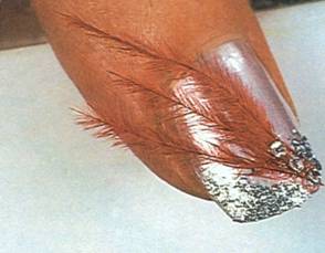 остаться за пределами ногтя. Перышки - украшение недолговечное, но их вполне