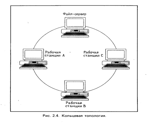 "кольцо" (рис. 2.4). В этом случае данные передаются от одного