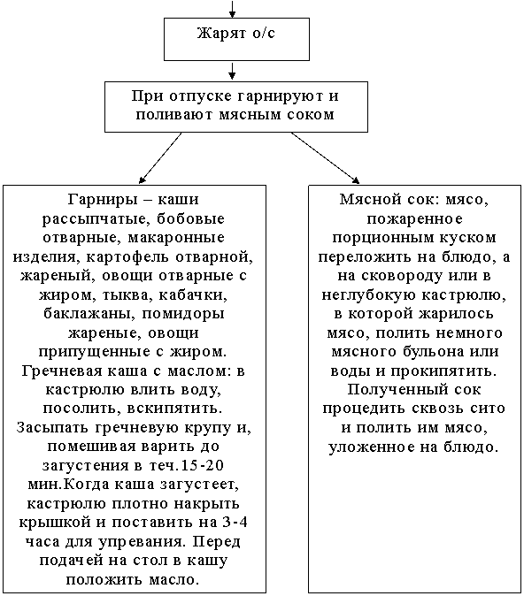 При отпуске шницель гарнируют и поливают соком, выделившимся при