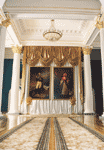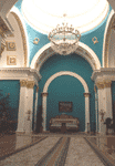 куполом квадратный зал (с нишами и антресолями), обрамлённый рядами мраморных