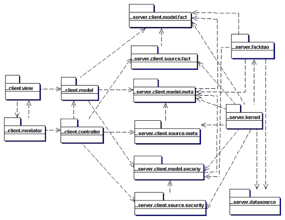 server.client.model.fact не зависит от других пакетов, но от него зависят