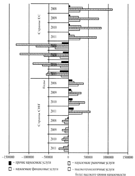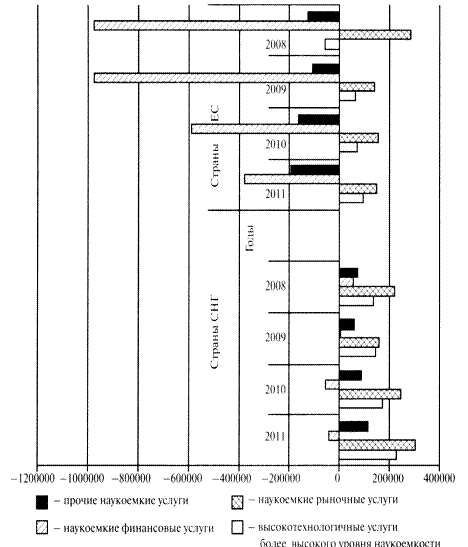 рыночные услуги; наукоемкие финансовые услуги; прочие наукоемкие услуги);