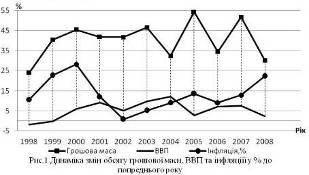рівень інфляції і зростання грошової маси у порівнняні і минулими роками.