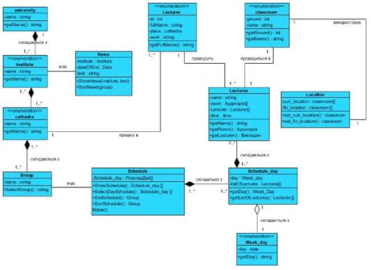 використаємо між класами пов’язаних з розкладом. Всі дані положення відобразимо