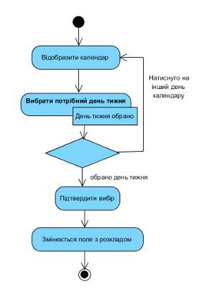 використання дозволяє користувачу обрати день тижня, з відповідним розкладом.