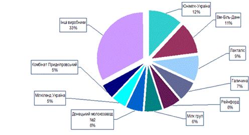 предприятий не занимает крупную долю на рынке. Для рынка молочной продукции в