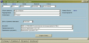 Каталога объектов ремонта (вызов режима выбора по F3, выбор значения по Enter).
