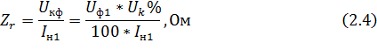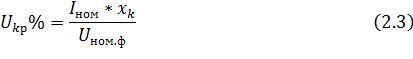напряжения короткого замыкания;кр % - реактивная составляющая