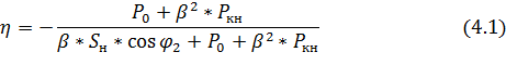 трансформатора от характера нагрузки, определяем расчетным путем согласно
