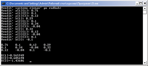 systemu rivnan' po radkah:\n";(i=0;i<3;i++)