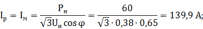= 60 кВт; cos φ = 0,65; Uном = 380 В.