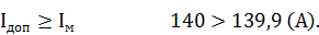 АВБбШв (3×70+1×50), Iдоп = 140 А. Виконуємо перевірку на відповідність