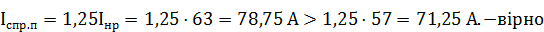 АВБбШв (1×10+1×6), Iдоп = 55 А. Виконуємо перевірку на відповідність