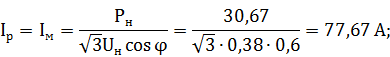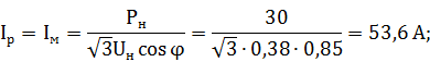 = 30 кВт; cos φ = 0,85; Uном = 380 В.