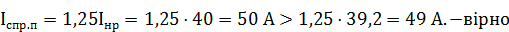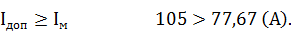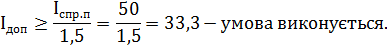 АВБбШв (3×50+1×35), Iдоп = 110 А. Виконуємо перевірку на відповідність