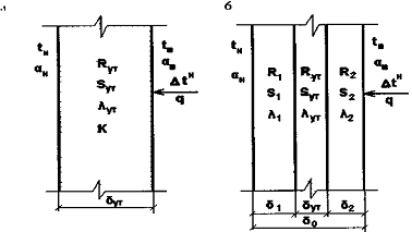 или многослойной ограждающей конструкции определяют соответственно из уравнений