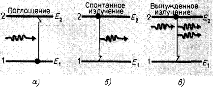 переходит на уровень 2. Спонтанный переход электронов с уровня 2 на уровень 1