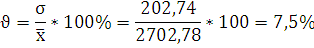 что степень колеблемости значений надоев составляет 7,5%.